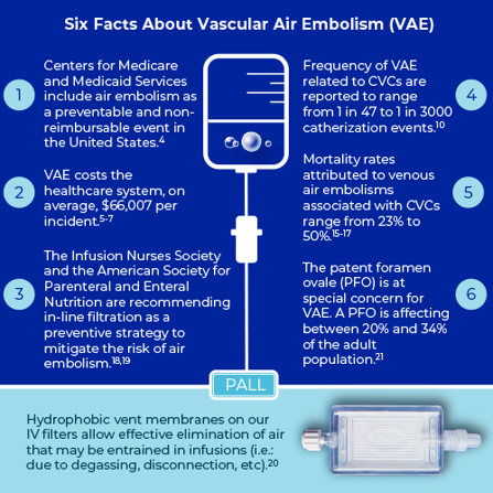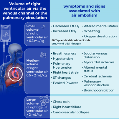 Infographic showing clinical facts and prevention strategies for vascular air embolism in IV therapy