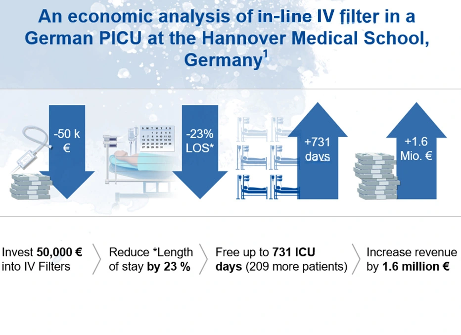 Economic impact: studies suggest that in-line IV filters reduce the length of stay in ICUs and hospitals
